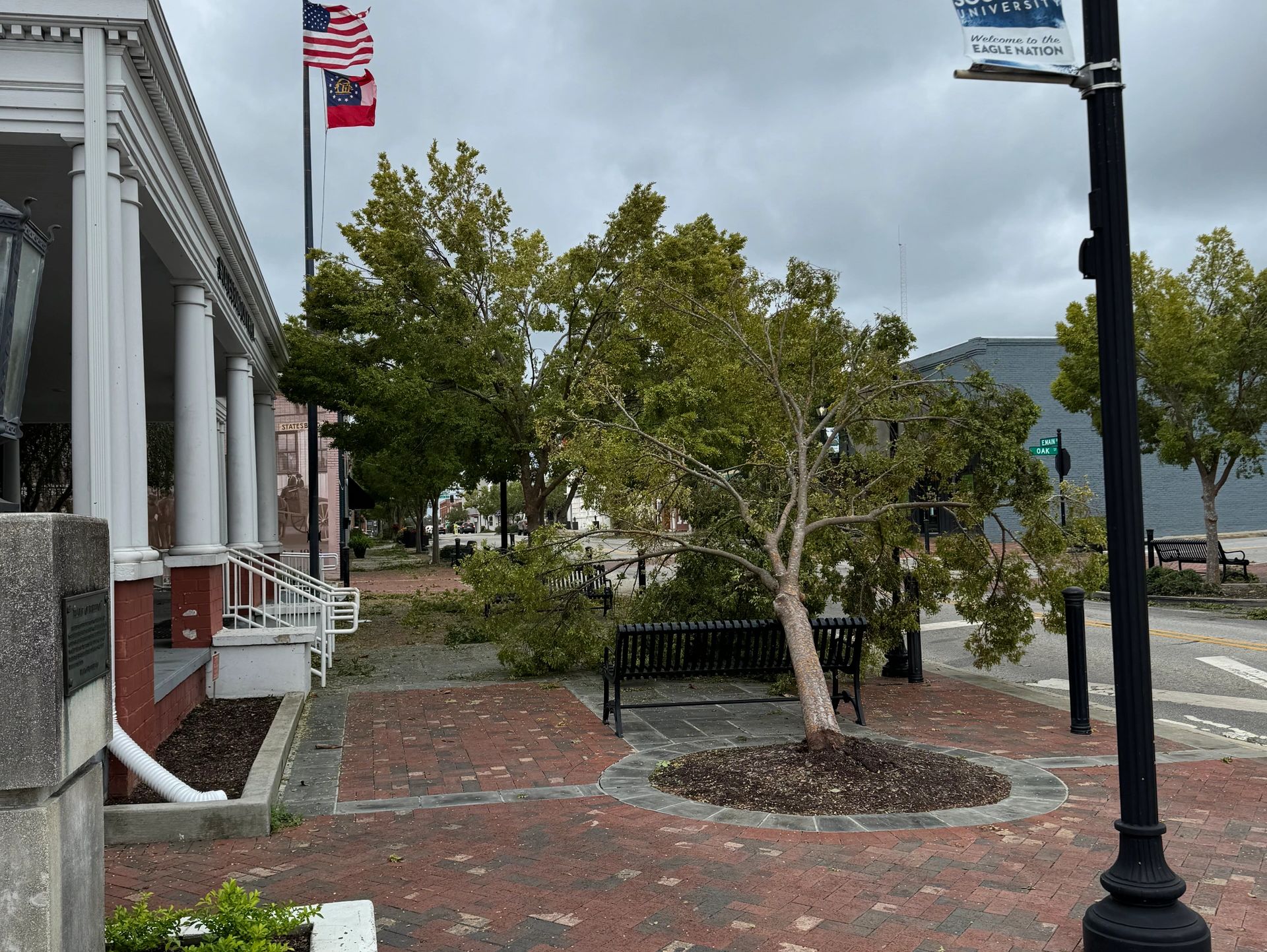 Two statesboro fire trucks and a couple of Statesboro Police cars were on the scene. Statesboro Fire Captain Stacy Wilson said “no structural damage. Just all glass. No injuries.” He said they come out to make sure the building is structurally sound and he also said there was no fire.